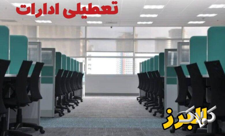 اخبار تعطیلی ادارات البرز شنبه ۲۰ دی ۱۴۰۴ / نحوه فعالیت بانکها و ادارات کرج شنبه