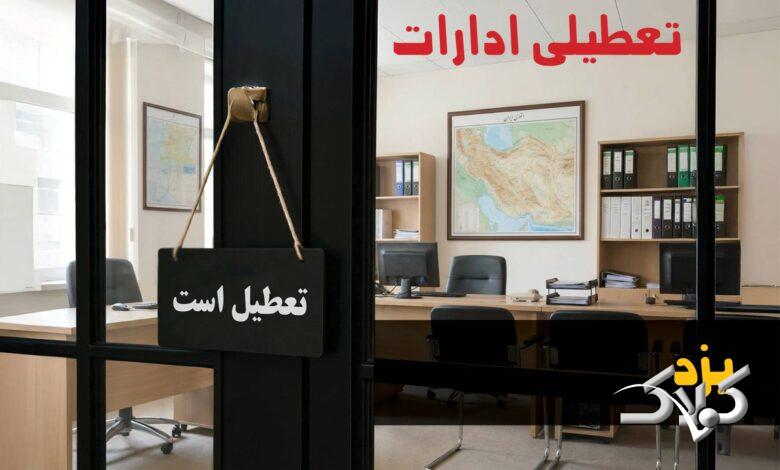 تعطیلی ادارات یزد فردا دوشنبه ۲۴ آذر ۱۴۰۴ و تعطیلی ادارات یزد دوشنبه را در این خبر بخوانید.