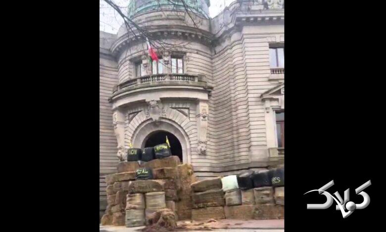ساختمانهای دولتی با کاه مسدود شد! این اقدام اعتراضی، توسط کشاورزان انجام شد.