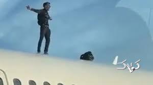 این مسافر پیش از آنکه توجه دیگران را جلب کند، خودش را به بالای هواپیما رساند؛ جایی که سرانجام مسافران حاضر در ترمینال متوجه او شدند.
