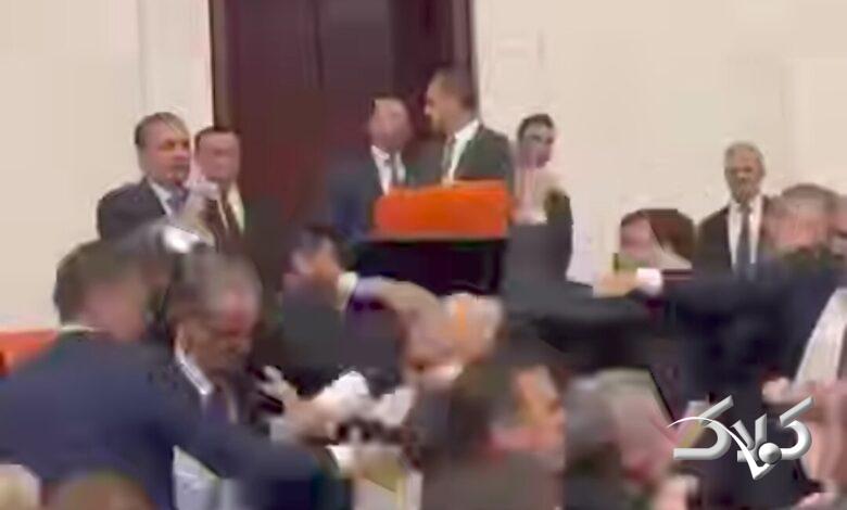 بزن بزن بین اعضای پارلمان ترکیه | پارلمان به رینگ بوکس تبدیل شد