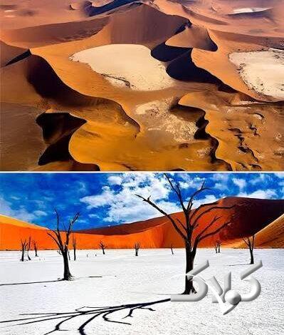 دره ددولی (Deadvlei) در نامیبیا یکی از قدیمیترین بیابانهای جهان و یکی از مشهورترین جاذبههای طبیعی آفریقاست و بسیاری از مراجع گردشگری نام «آخرالزمان یخزده» را روی آن گذاشتهاند.درختان ۹۰۰ ساله سوخته با خاک سفید و تپههای شنی مشخصه آن است.