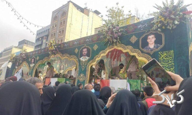 تشییع پیکر شهدای مقاومت ملی در تهران + ویدئو | ادای احترام نظامی به شهدا