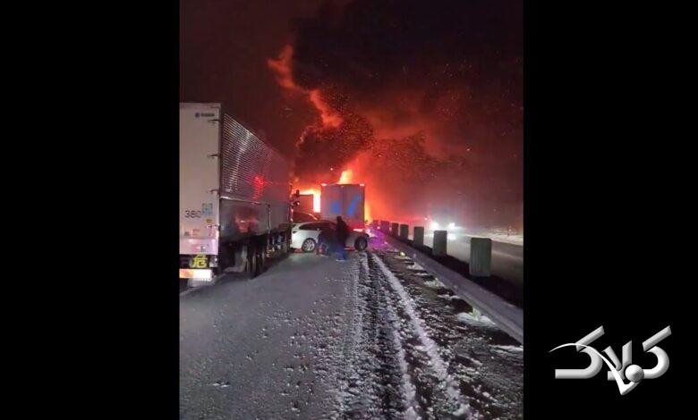 تصاویری از آتش گرفتن خودروها و تصادف زنجیرهای در یک جاده | ویدئو