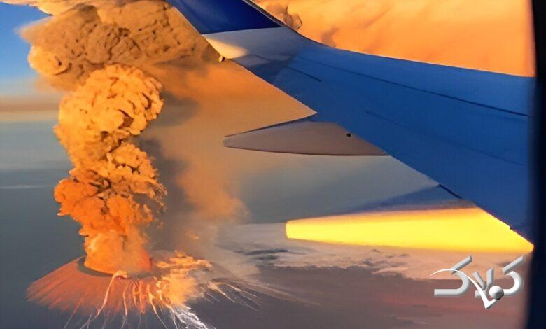 تصاویر لحظه نایاب فوران آتشفشان از داخل هواپیما + ویدئو