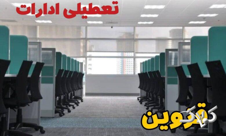 تعطیلی ادارات قزوین فردا چهارشنبه ۳ دی ۱۴۰۴ / نحوه فعالیت بانکها قزوین چهارشنبه ۳ دی ۱۴۰۴