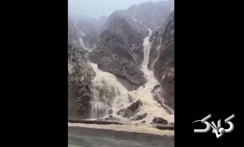 جاری شدن آب خروشان از کوه در حاشیه یک جاده + ویدئو | تصاویری از طغیان کم‌سابقه یک رودخانه