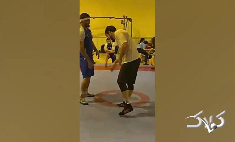 سرشاخ شدن جالب حسن یزدانی و کادیف در تمرین تیم کشتی استقلال + ویدئو