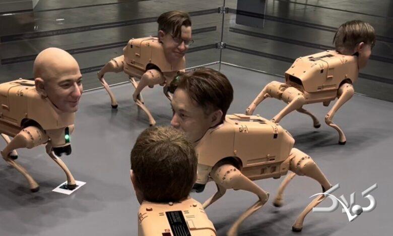 سگ‌های رباتیک با سر ایلان ماسک و مارک زاکربرگ! | ویدئو