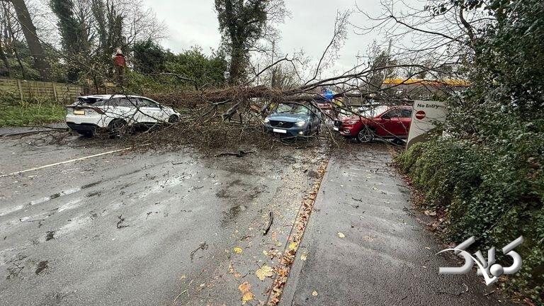 غرق شدن خودروها در آب + ویدئو | تصاویری از وضعیت انگلیس بعد از طوفان مهیب