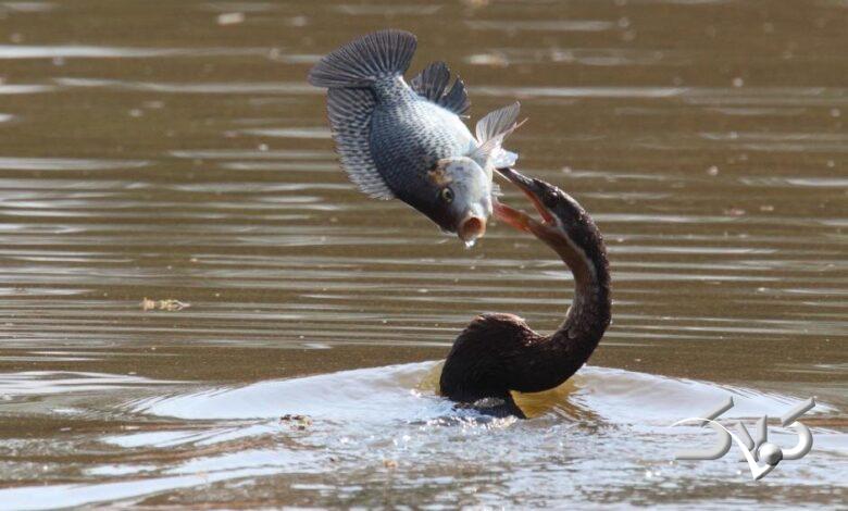 لحظه جالب بلعیدن ماهی توسط مرغ مارگردن | این فیلم ۱۶ برابر کُند شده است