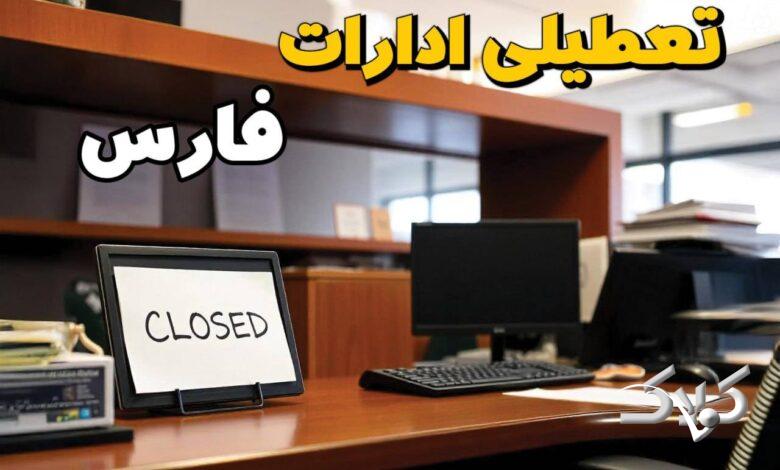 وضعیت تعطیلی ادارات و نحوه فعالیت کارمندان استان فارس در روز دوشنبه ۱۵ دی ۱۴۰۴ را در این مطلب خواهید خواند.