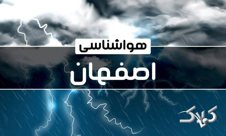 تحلیل وضعیت آب و هوای استان اصفهان به مرکزیت اصفهان امروز. هم اکنون آسمان مرکز استان تمام ابری است و میانگین دما در این منطقه ۱۰ درجه می‌باشد. میزان رطوبت نسبی هوا ۴۹ درصد است.
