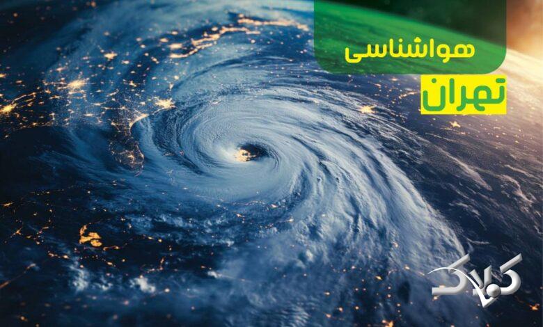 رئیس مرکز ملی پیشبینی و مدیریت بحران مخاطرات وضع هوا ادامه داد: طی پنج روز آینده، آسمان استان تهران قسمتی ابری تا ابری و گاهی همراه با وزش باد پیشبینی میشود و با فعالیت سامانه بارشی، بهتناوب تا روز جمعه (۲۸ آذر) در برخی ساعات افزایش ابر و رگبار پراکنده باران رخ خواهد داد و احتمال رعدوبرق در پارهای از مناطق نیز وجود دارد.