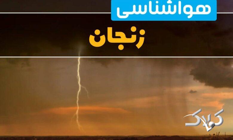 تحلیل وضعیت آب و هوای استان زنجان به مرکزیت زنجان امروز. هم اکنون آسمان مرکز استان کمی ابری است و میانگین دما در این منطقه ۵ درجه می‌باشد. میزان رطوبت نسبی هوا ۵۶ درصد است.
