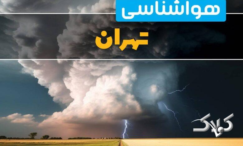 بر اساس اعلام اداره کل هواشناسی استان تهران، آسمان تهران فردا (۱۰ دیماه) قسمتی ابری تا نیمه ابری و وزش باد، گاهی افزایش ابر با حداقل دمای صفر و حداکثر دمای ۵ درجه سانتیگراد و طی روز پنجشنبه (۱۱ دیماه) کمی ابری تا قسمتی ابری و غبار محلی گاهی افزایش ابر با حداقل دمای ۱- و حداکثر دمای ۶ درجه سانتیگراد پیشبینی میشود.