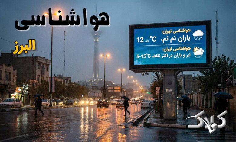 وضعیت آب و هوا البرز فردا دوشنبه ۲۴ آذر ۱۴۰۴ + هواشناسی استان البرز