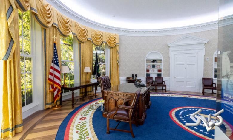 چرخش ۳۶۰ درجهای در دفتر بیضی شکل ترامپ + ویدئو | رونمایی از دکور جدید | از تصاویر خانوادگی تا پرتره روسای جمهور سابق