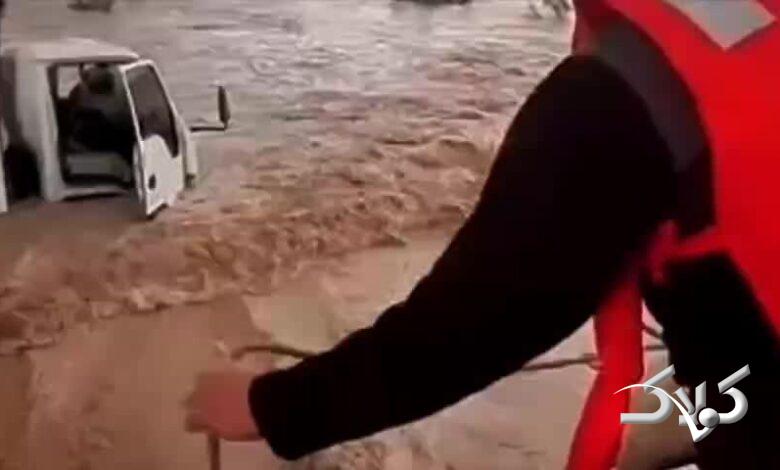 لحظات دلهرهآور نجات راننده گرفتار در سیلاب کهنوج با تلاش امدادگران هلال احمر را در این ویدئو ببینید.