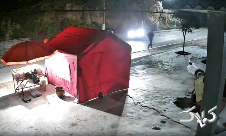 لحظه هولناک برخورد با چادر فروشنده غذای خیابانی! + ویدئو | تصاویر دوربین مداربسته از صحنه تصادف