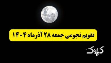 تقویم نجومی فردا جمعه ۲۸ آذر ۱۴۰۴ / تقویم همسران و ساعت سعد و نحس بیست و هشتم آذر ۱۴۰۴